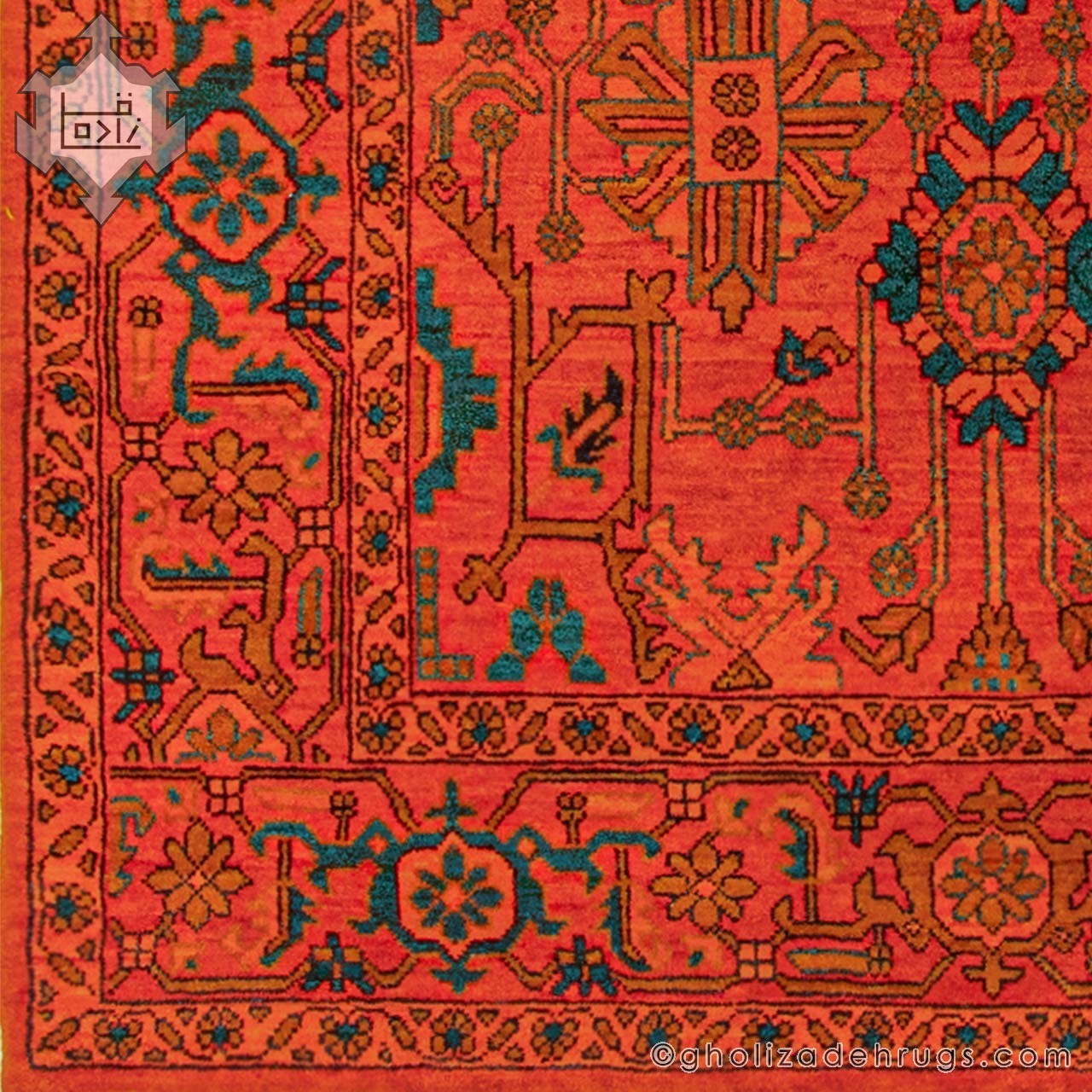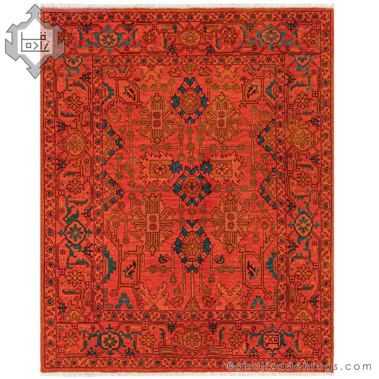 This handwoven Heriz rug by Gholizadeh represents the authentic weaving tradition of the Bakhshayesh region, renowned for bold colors and exceptional durability. The iconic madder red—globally associated with the Gholizadeh name—combined with refined green accents, creates a powerful and visually balanced composition that adds warmth and character to any interior.