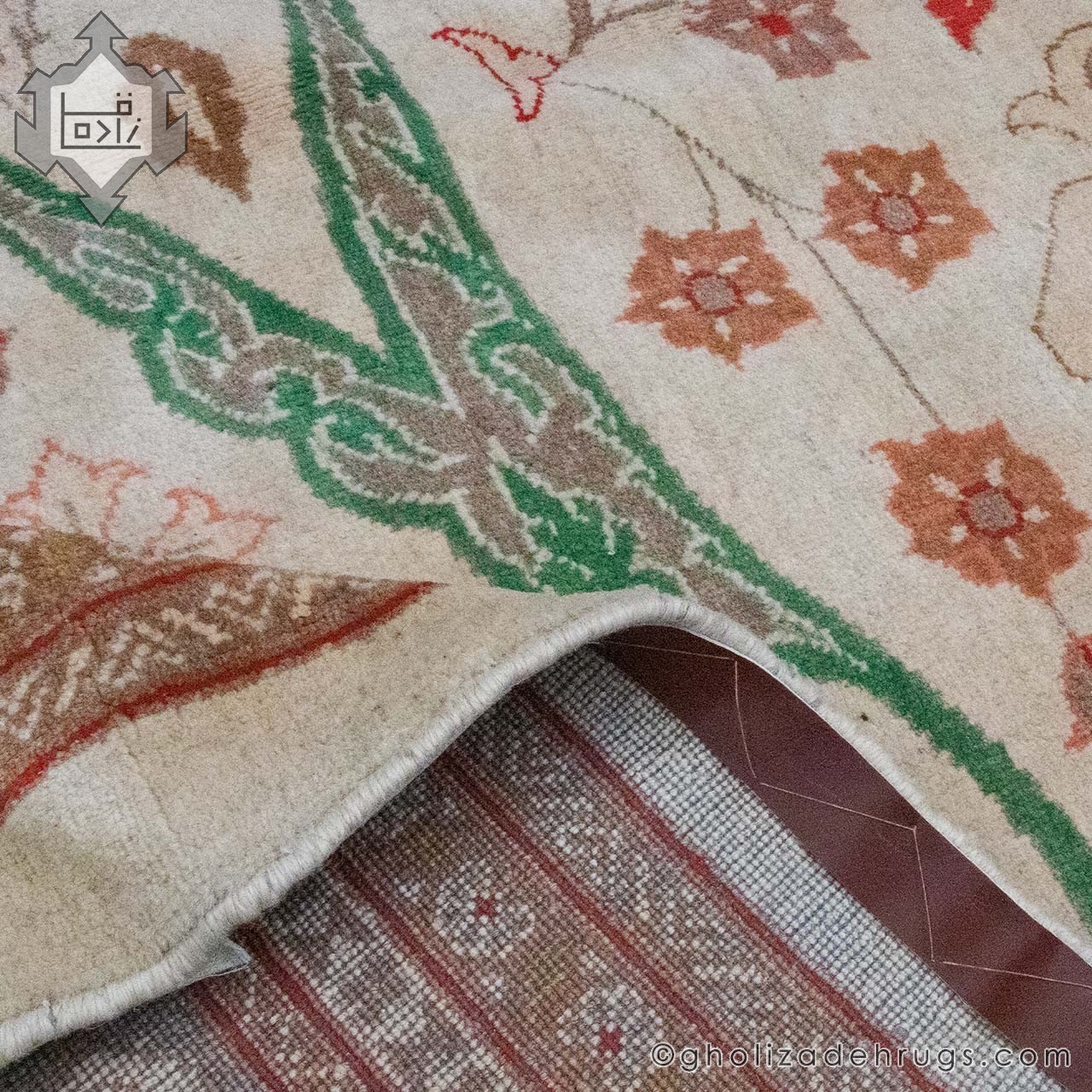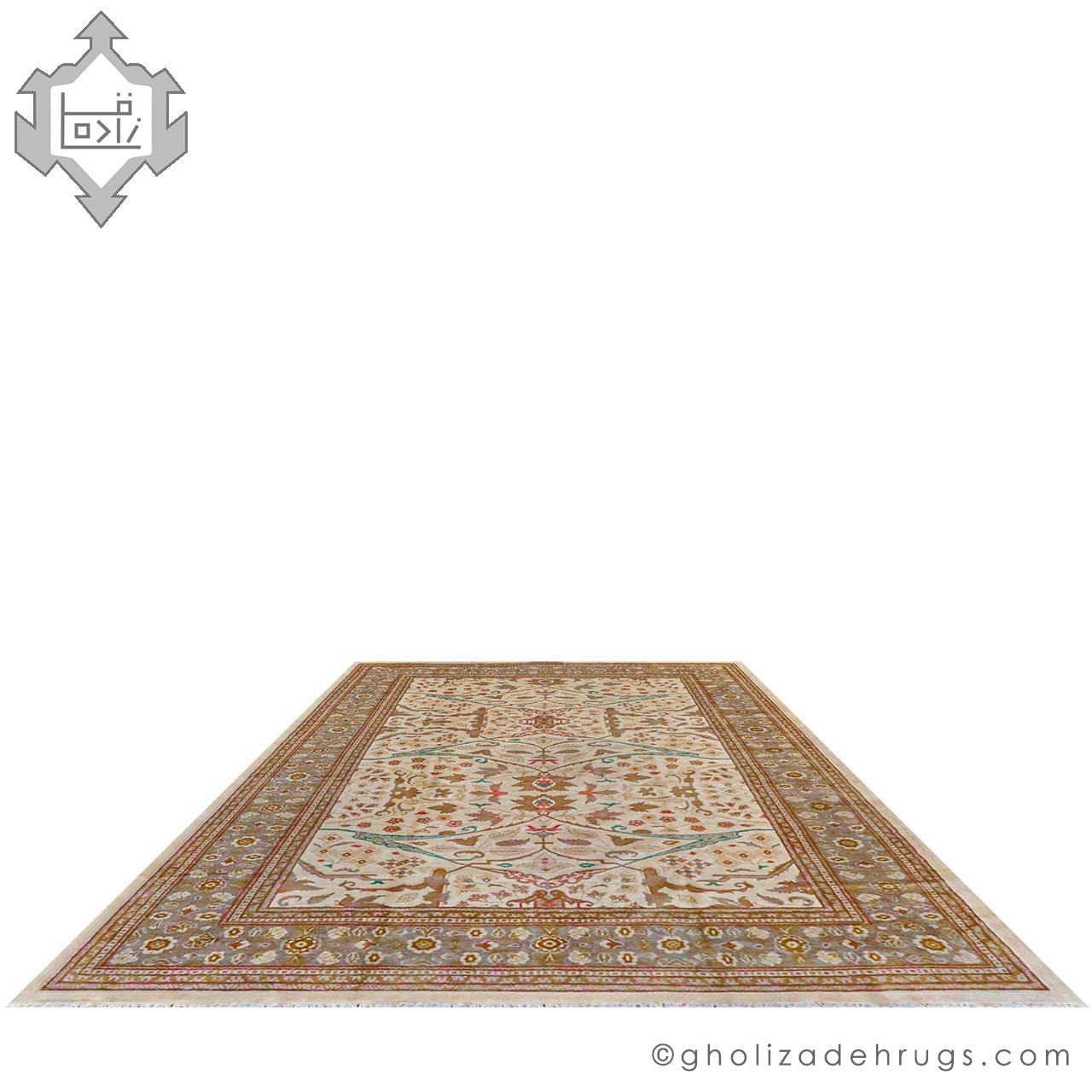 All colors in this rug are produced using 100% natural dyes, extracted from madder root, walnut husk, weld, natural indigo, and other traditional dye sources. These plant-based dyes give the rug its warm, organic tones while offering exceptional lightfastness and washfastness—a hallmark of naturally dyed Gholizadeh rugs. Combined with hand-spun spring wool, the rug displays soft tonal variations and a rich texture reminiscent of antique Sultanabad pieces.
