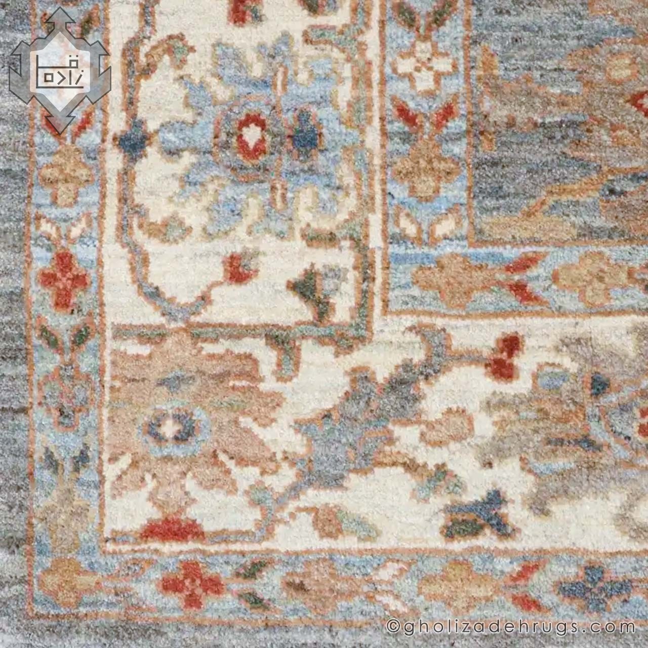 This handwoven Sultanabad rug is a refined and successful revival of an iconic Amritik Ziegler design—celebrated for its timeless structure and elegant simplicity. The gentle gray field combined with a light cream border creates a calm and contemporary aesthetic that integrates seamlessly with modern furnishings and neutral interior palettes.