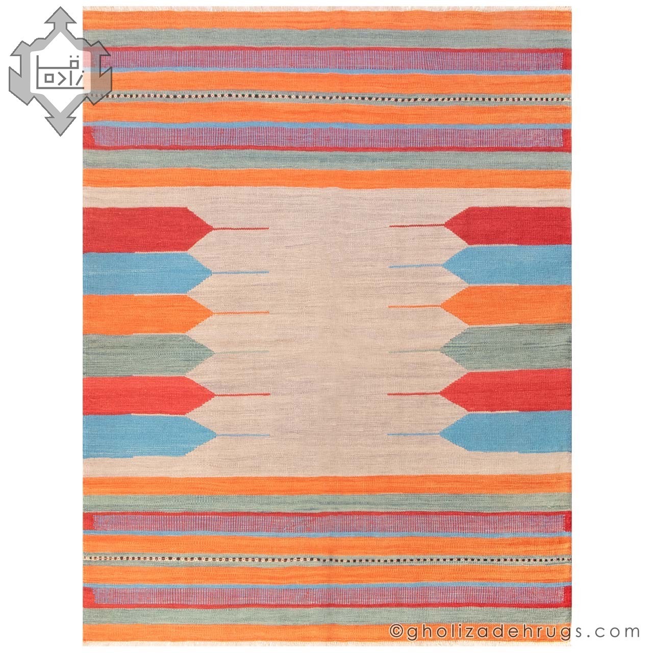 فرش دستبافت دو متری تخت باف کد F06- ابعاد 127*180
