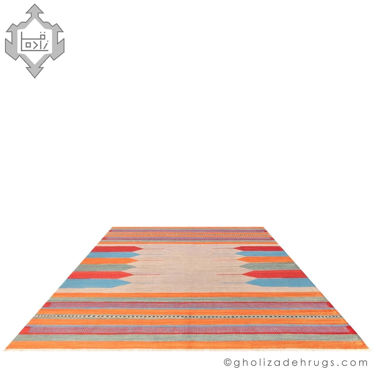 فرش دستبافت سه متری تخت باف کد F16- ابعاد 168*240