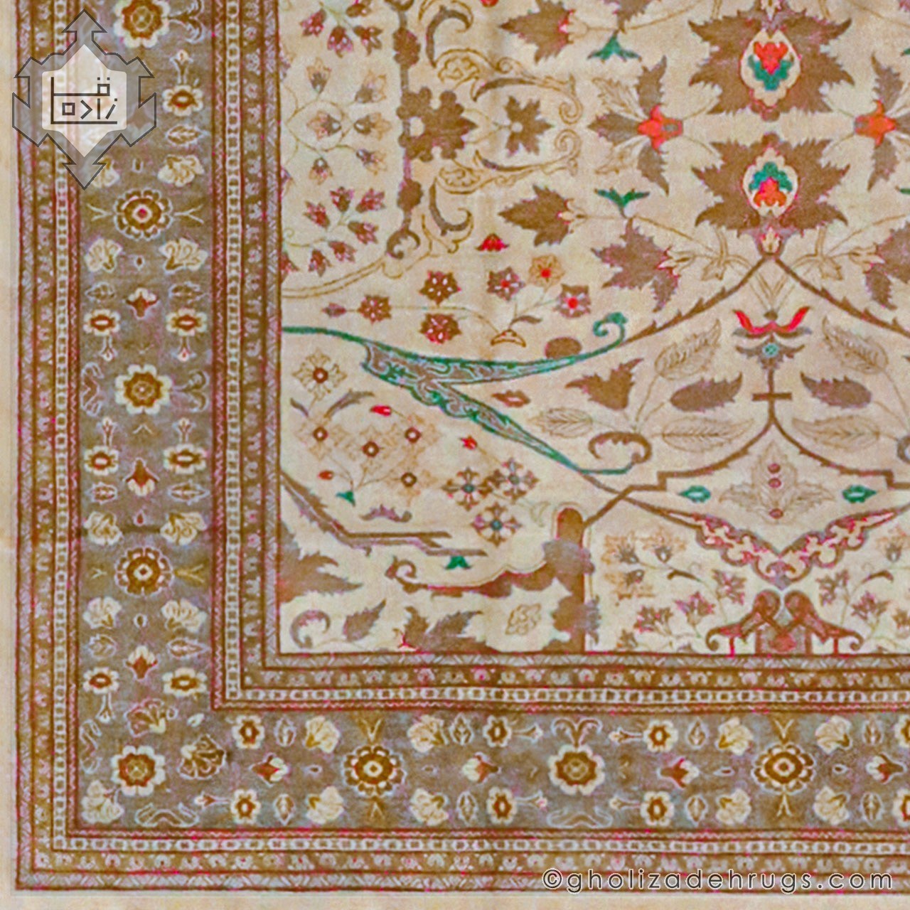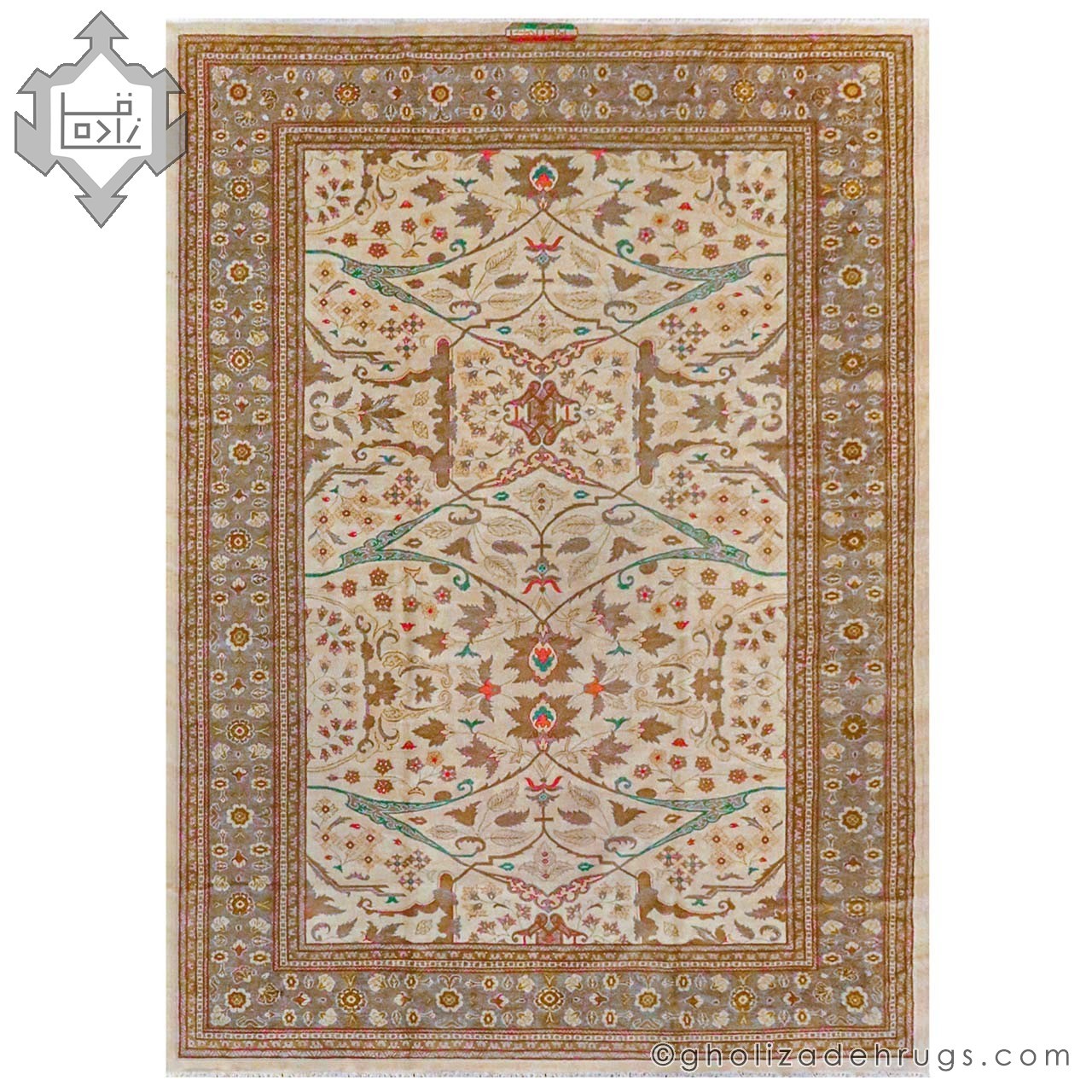 در کنار این ویژگی‌ها، ابعاد بزرگ و کم‌یاب ۲۰ متری این فرش، آن را به اثری استثنایی تبدیل کرده است؛ فرشی که می‌تواند نقطه کانونی هر فضای فاخر باشد و شخصیت و شکوه معماری داخلی را به‌طور قابل‌توجهی ارتقا دهد.
