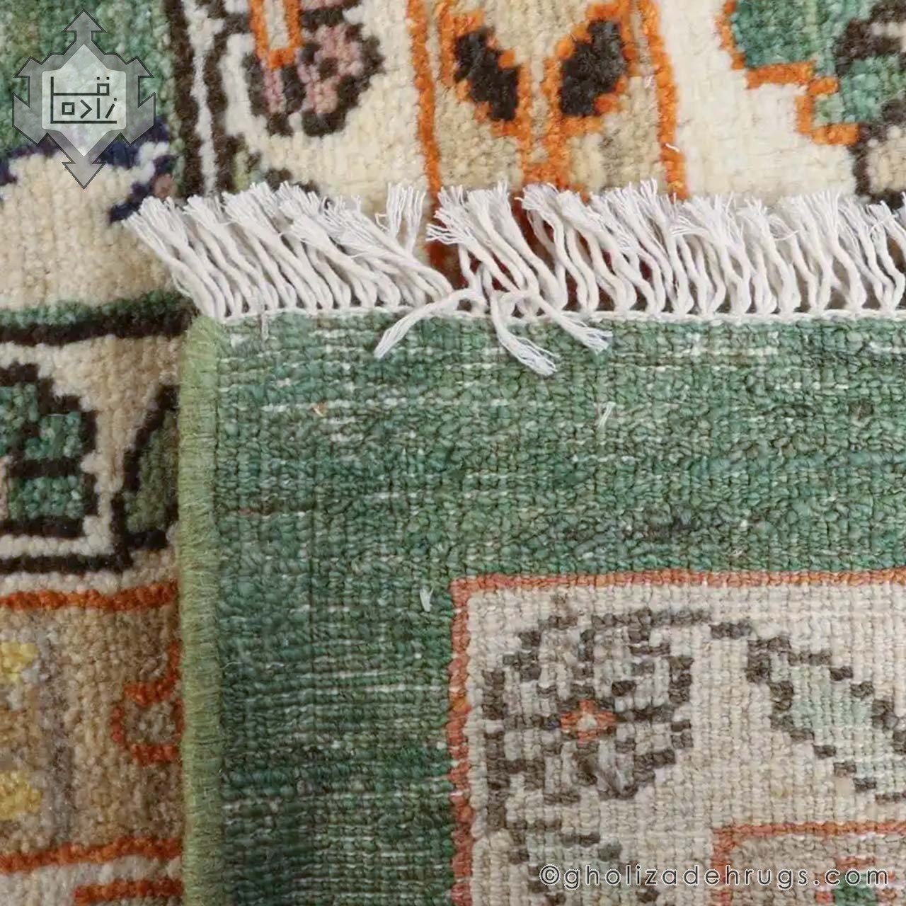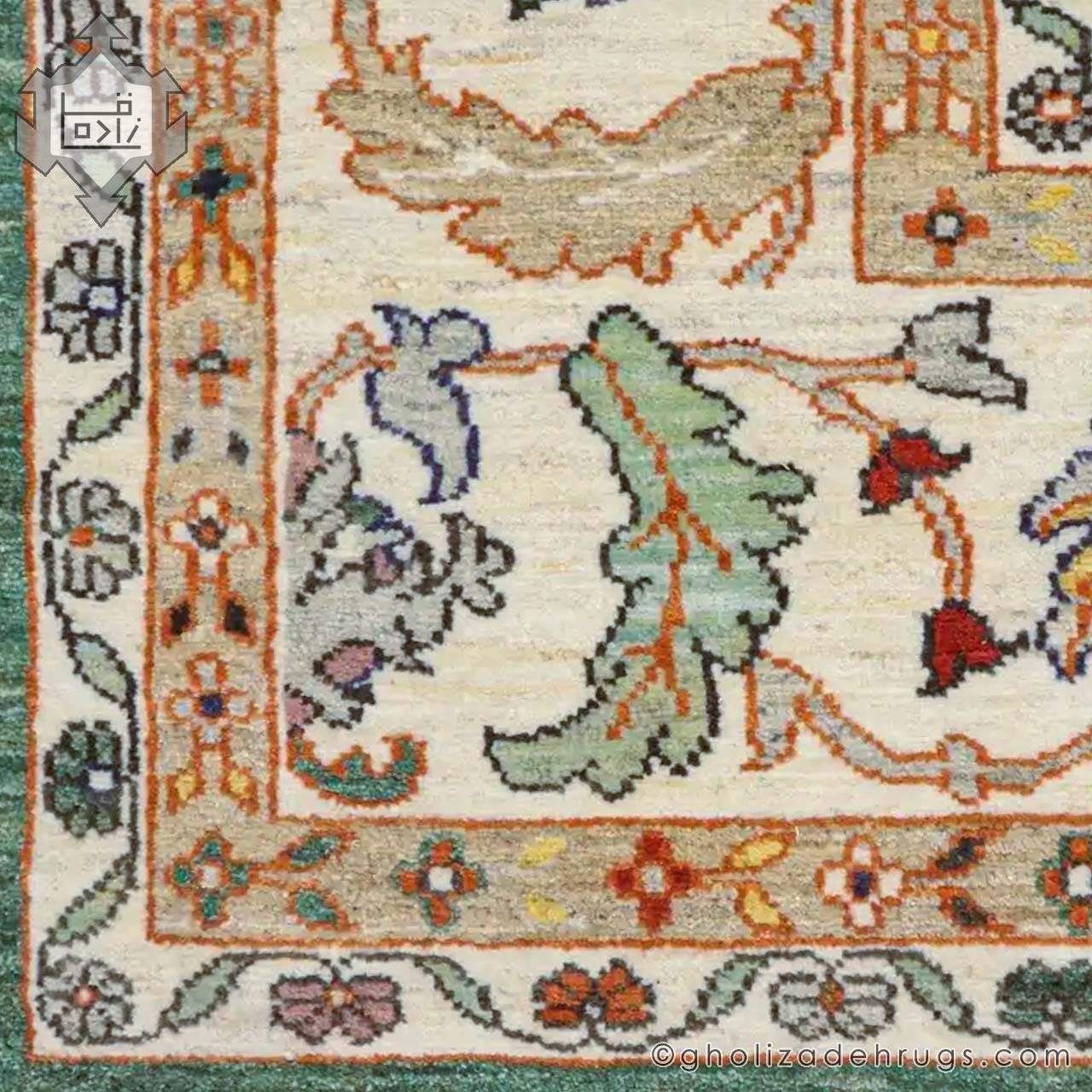 سادگی و وقار رنگ سبز در کنار حاشیه کرم، قالی SA622 را به گزینهای سازگار با طیف وسیعی از پالتهای رنگی در منزل شما تبدیل میکند. اگر به دنبال قالیای هستید که هم زیبایی طبیعی و هم سازگاری کاربردی با فضا داشته باشد، این اثر میتواند نقطه کانونی دکور خانهتان باشد.