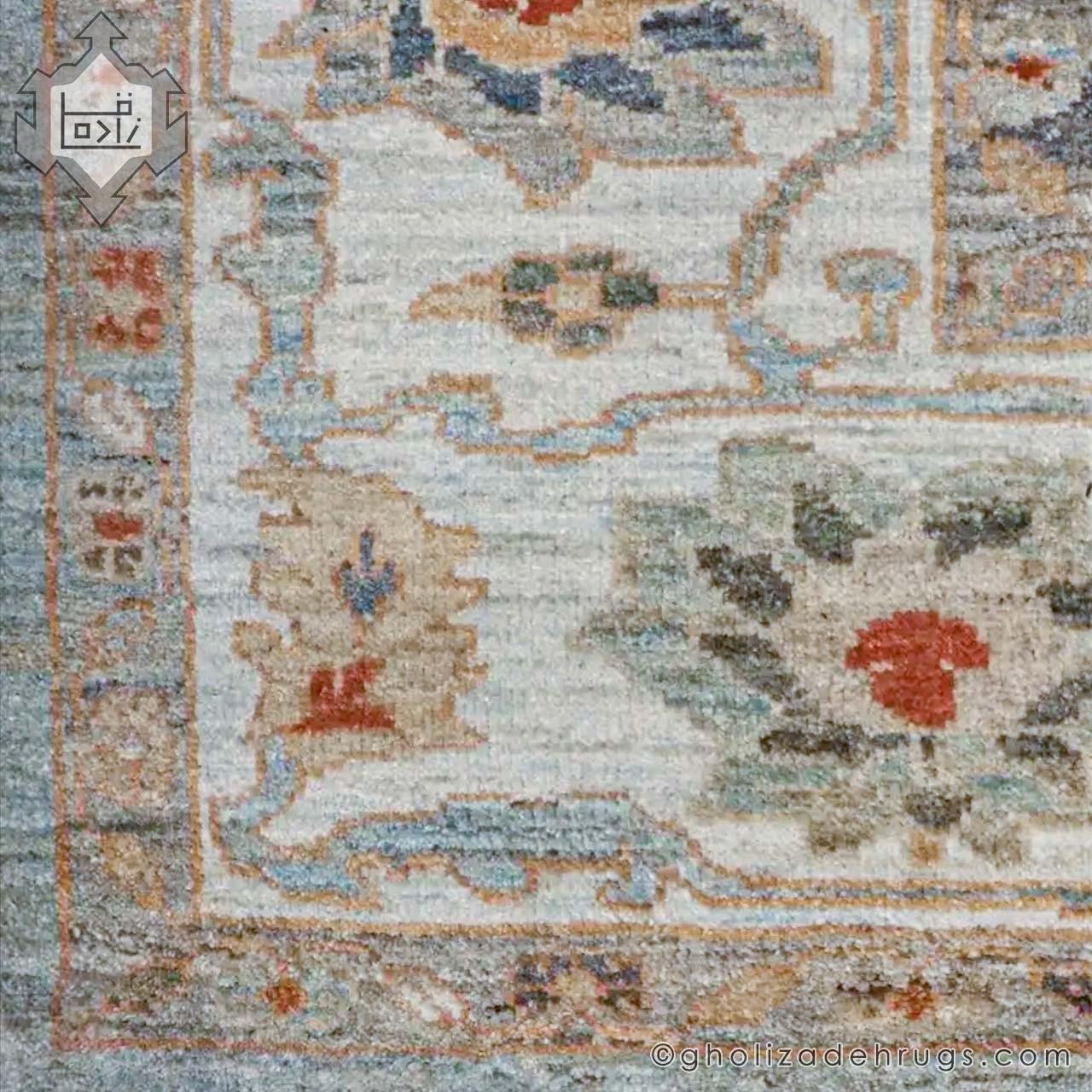 این قالی دستبافت ۸ متری سلطانآباد نمونهای اصیل از هنر قالیبافی ایران است که با زمینه آبی بسیار ملایم و حاشیه کرم روشن، فضایی آرام، متعادل و چشمنواز ایجاد میکند. رنگبندی این فرش کاملاً تنالیته و هماهنگ طراحی شده و تمامی رنگها بهصورت تدریجی و نرم در کنار یکدیگر قرار گرفتهاند؛ بهگونهای که هیچ رنگی در بافت قالی برجسته یا ناهماهنگ به نظر نمیرسد و اصطلاحاً «توی ذوق نمیزند».