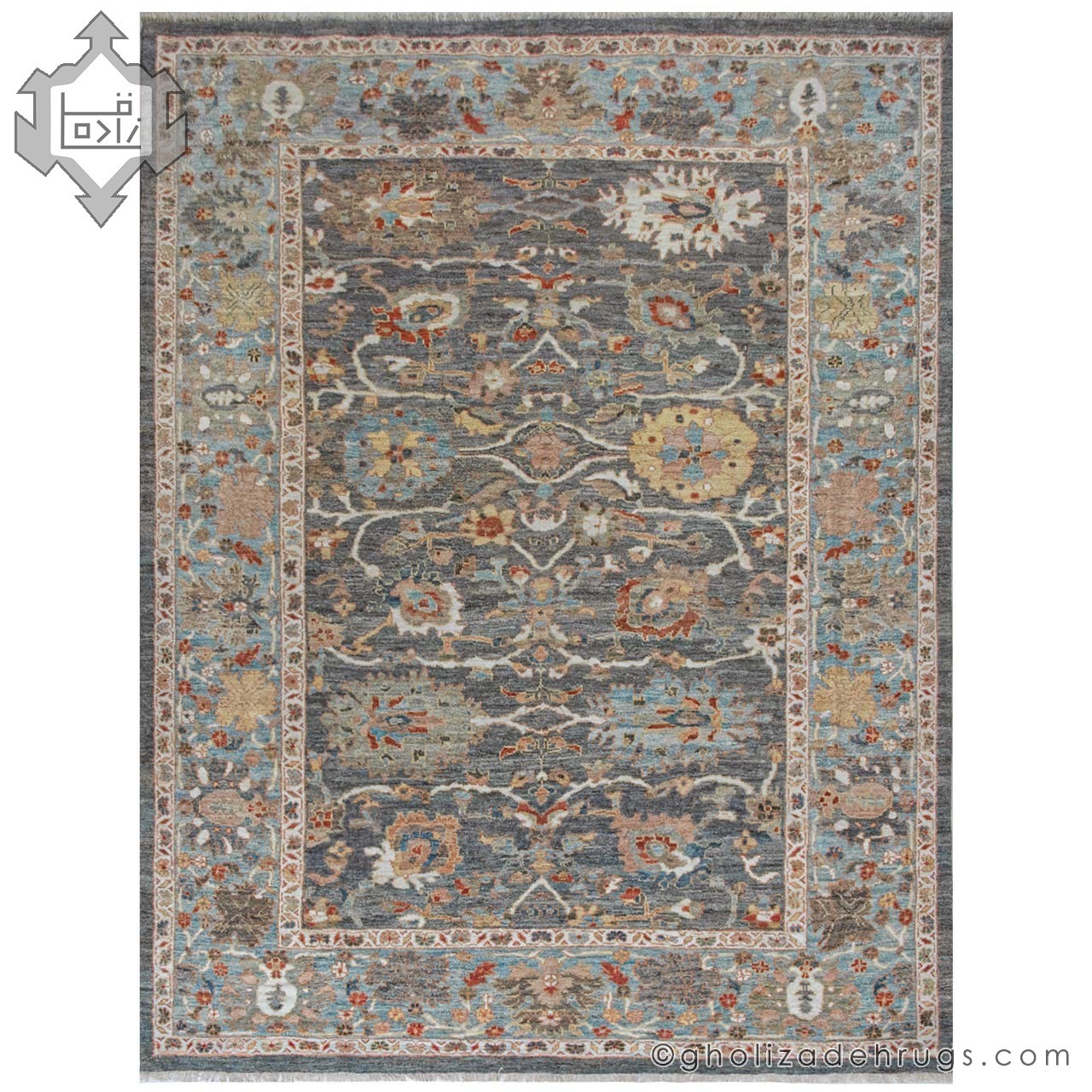 در این فرش، زمینهی طوسی نقش بستری آرام و خنثی را ایفا میکند، در حالی که حاشیهی آبی قاببندی کلاسیک و منسجمی به کل ترکیب میبخشد. آنچه این قالی را متمایز میکند، گلهای رنگی است که روی زمینهی تیره جلوهای برجستهتر پیدا کردهاند. این تضاد کنترلشده باعث میشود فضا رنگدار و زنده بهنظر برسد، بدون آنکه از ماهیت تنالیته، سنگین و نجیب فرشهای سلطانآباد فاصله بگیرد.